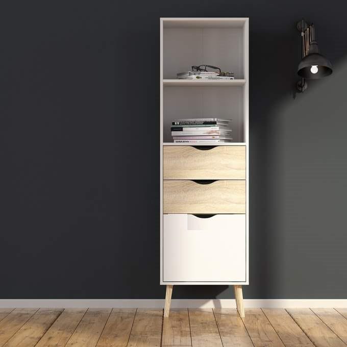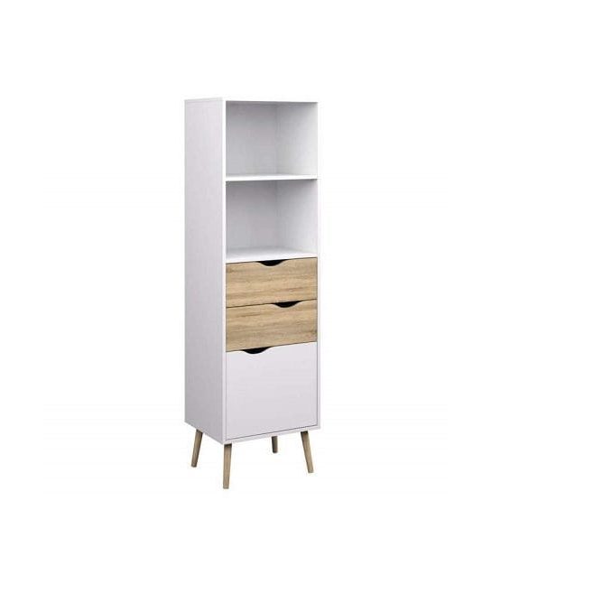 Bibliothèque avec 2 tiroirs et 1 porte – Finition blanche et chêne