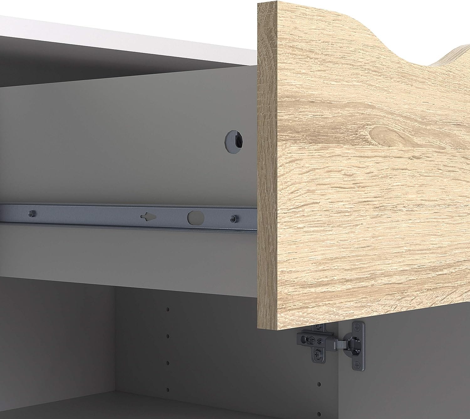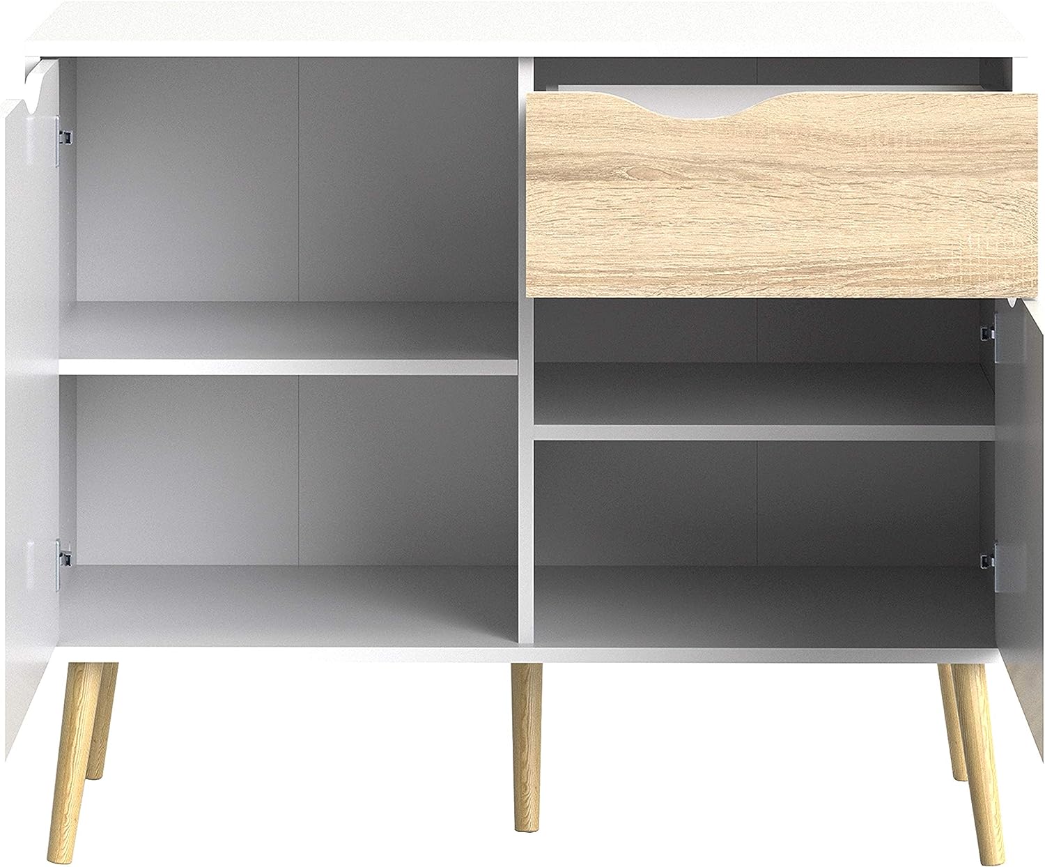 - Intemporel, mais moderne – Inspiré du design scandinave, Oslo se caractérise par des lignes simples et des courbes subtiles. Avec une finition blanche épurée et des accents modernes, Monteno est soutenu par des pieds fuselés en chêne massif, perfectionnant cette interprétation fraîche du design du milieu du siècle.