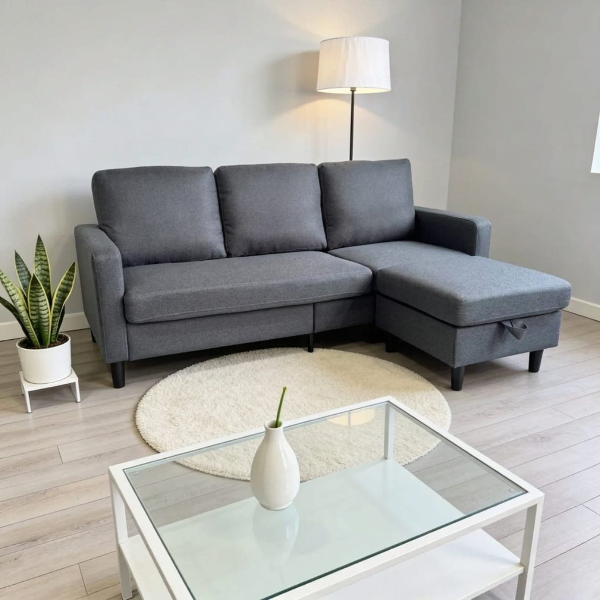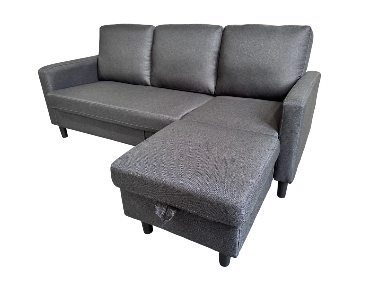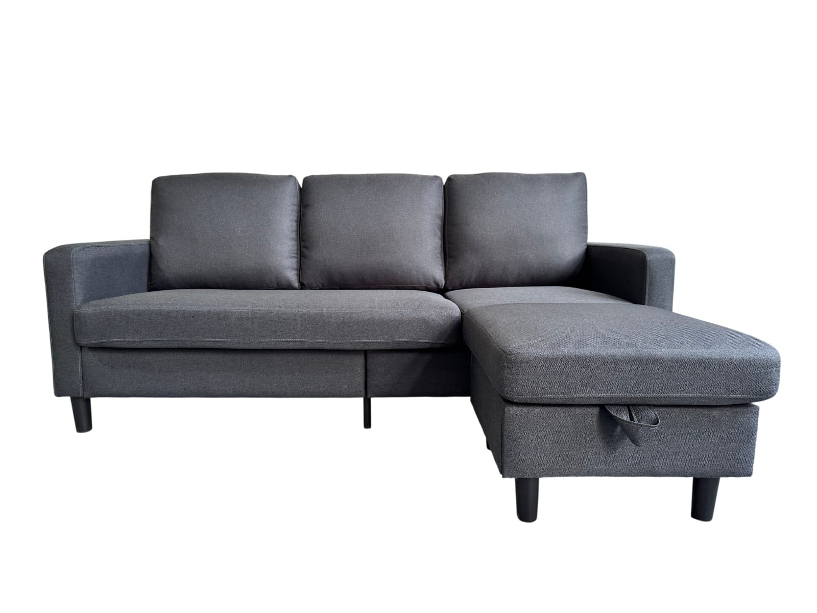 OSLO – Canapé d’angle réversible avec Pouf de rangement – Gris