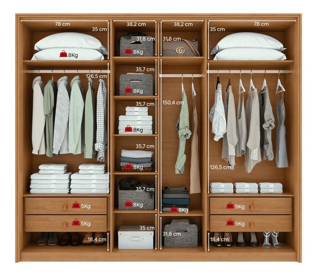 Armoire Couple 100 % MDF 6 Portes Easy Move – Finition Amendoa Clean