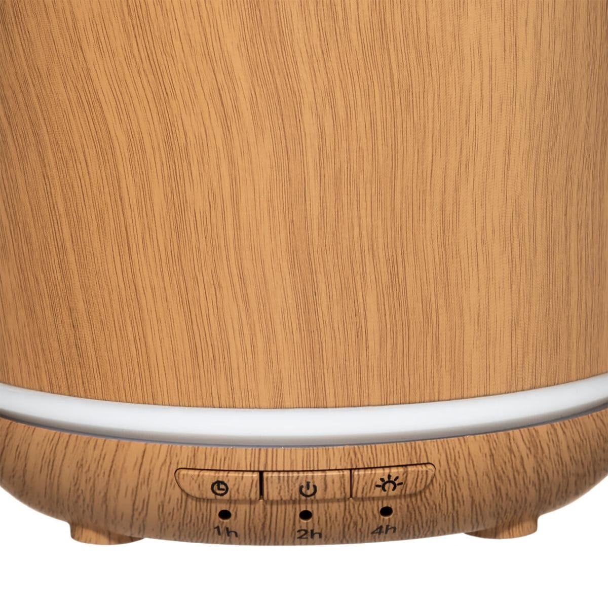 Fonctionnant avec de l’eau, ce diffuseur d’huiles essentielles imitation bois bénéficie d’un anneau lumineux à la base. Vous le brancherez sur le secteur afin de programmer la diffusion de brume aromatique par timer et choisir votre ambiance lumineuse.