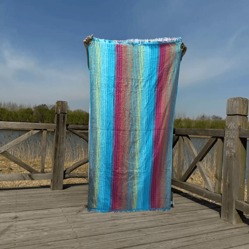 Apportez une touche de bonne humeur à vos journées au bord de la mer avec cette superbe serviette de plage aux couleurs vives. Conçue dans un tissu léger et agréable au toucher, elle arbore de magnifiques rayures  pour un look à la fois dynamique et décontracté.