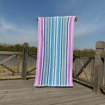 Apportez une touche de bonne humeur à vos journées au bord de la mer avec cette superbe serviette de plage aux couleurs vives. Conçue dans un tissu léger et agréable au toucher, elle arbore de magnifiques rayures  pour un look à la fois dynamique et décontracté.