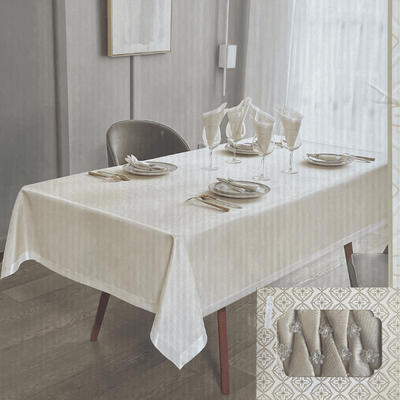 NAPPE DE TABLE SATINE BLANC CREME 1