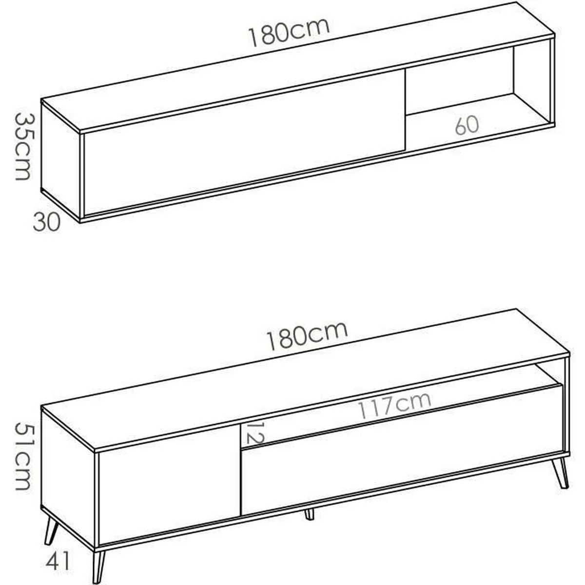 Dimensions : Meuble TV L180 x H51 x P41