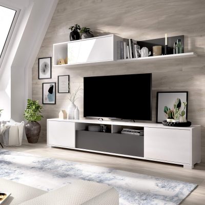 Super Promo | Alida (ROGER) meuble tv L200cm mural contemporain –  noir granite et blanc