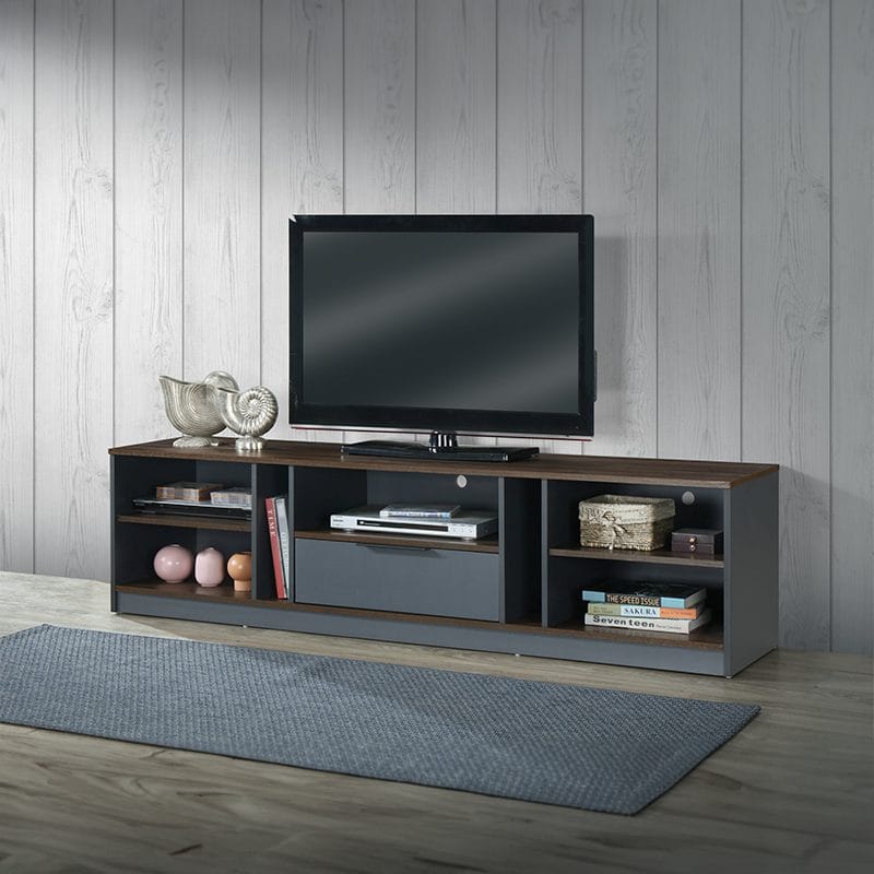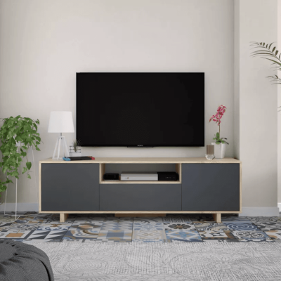 Avec un design à la fois tendance et pratique, ce meuble TV robuste deviendra certainement un point central de votre pièce. Ce meuble TV de style classique en aggloméré de haute qualité, sera un supplément intemporel à votre maison. Il dispose de 1 tiroir et de 5 compartiments ouverts pour ranger des appareils multimédia, des consoles de jeu et des magazines. De plus, le support TV est facile à nettoyer avec un chiffon humide.