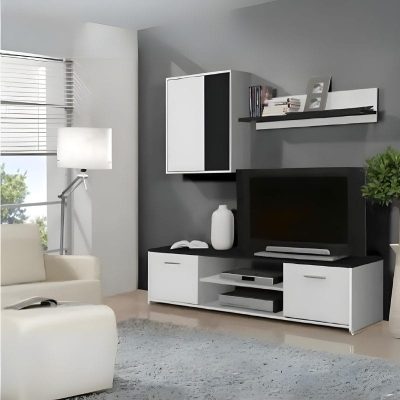 Belus (RANI) meuble tv contemporain blanc et niche en décor noir  0z6682bo