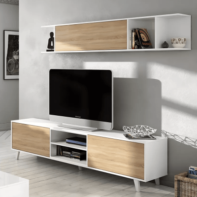 Avec un design à la fois tendance et pratique, ce meuble TV robuste deviendra certainement un point central de votre pièce. Ce meuble TV de style classique en aggloméré de haute qualité, sera un supplément intemporel à votre maison. Il dispose de 2 portes et de 2 compartiments ouverts pour ranger des appareils multimédia, des consoles de jeu, etc.