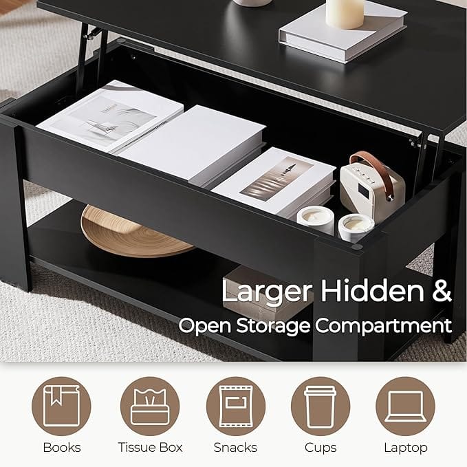 Table à manger : Cette table basse de stockage pourrait servit égalment d’une table à manger. Vous pourriez prene le repas tout en regardant la télé. Si vous habitez dans un appartement, avec notre produit, vous pourriez économr une somme d’argent pour la table à manger.